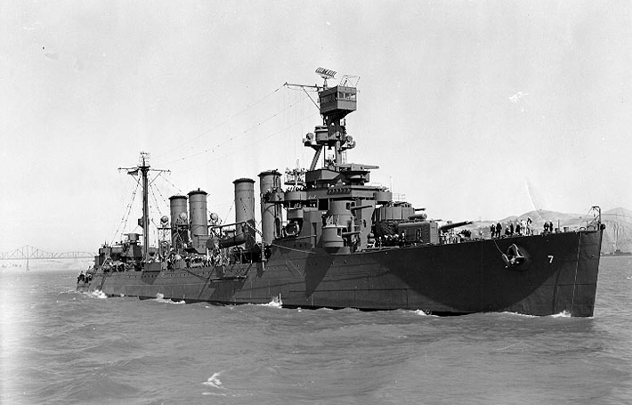 Upon my return I found all officers and men who were aboard at their stations, in high spirits, apparently only hoping that the enemy would return so that they could have another crack at them. The morale was exceptionally high.At this time the ship was in a precarious position due to the damage resulting from the torpedo hit and the bomb hit. The ship gave every indication of capsizing. Although this fact was self-evident, o person showed any desire to leave his post or the ship.The Anti-Aircraft battery of 3″, 1.1 and 50 caliber, had been manned and opened fire with great rapidity. Most of the crews were firing for the first time. Despite this it was reported that the Raleigh was credited with three enemy planes and a probable fourth. Ammunition parties were quickly functioning and no shortage of ammunition resulted.